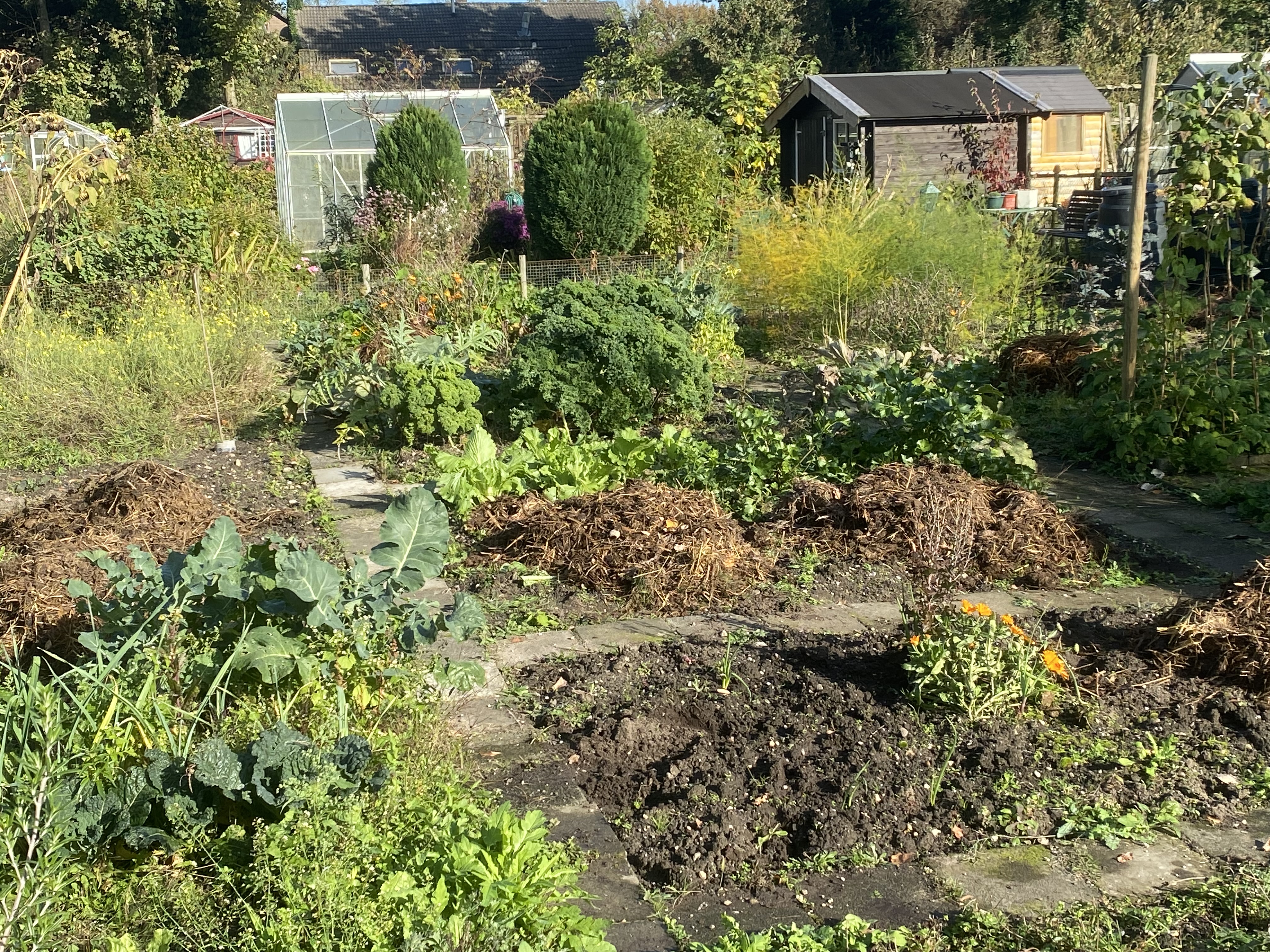 Vandaag is het een koude november dag om in de tuin te werken. Het is waterkoud. Ik heb vandaag weer verder gewerkt met het verdelen van de paardenmest. Vorige week heb ik de eerste twee vakken omgespit en de mest over het land verdeeld. Nu heb ik het grote aardappelveld schoon gemaakt en de mest…
